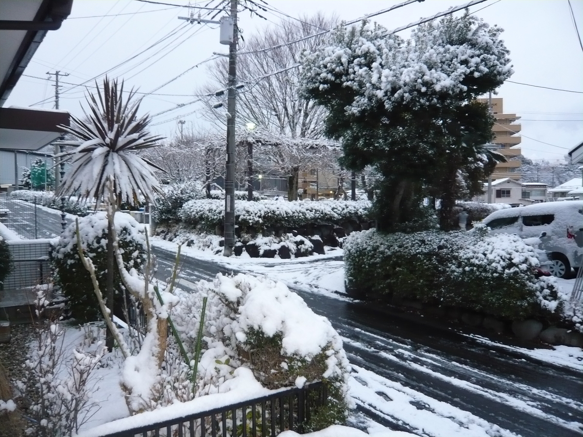 起きたら雪が降ってました。